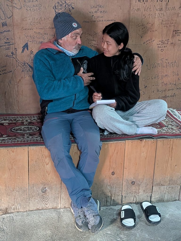Et cet automne 2025 elle est venue jusqu’au camp de base du Panbari. Car justement c’est la période des grandes vacances au Népal pour Dashain et Tihar. C’est une occasion unique pour elle de sortir de l’internat et se confronter à la vraie vie. Voici le compte rendu de notre expé au Peri Himal.